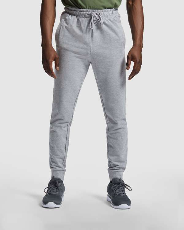 Pantalone lungo sportivo, girovita elastico con cordoncino regolabile, fascie elastiche alla caviglia, cuciture rinforzate, tasche laterali con cerniera e tasca posteriore con cucitura a vista.
