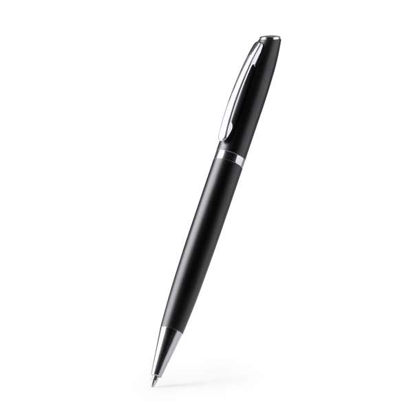 Elegante penna a sfera a rotazione con corpo in alluminio riciclato e dettagli in metallo. Ricarica jumbo a inchiostro blu.