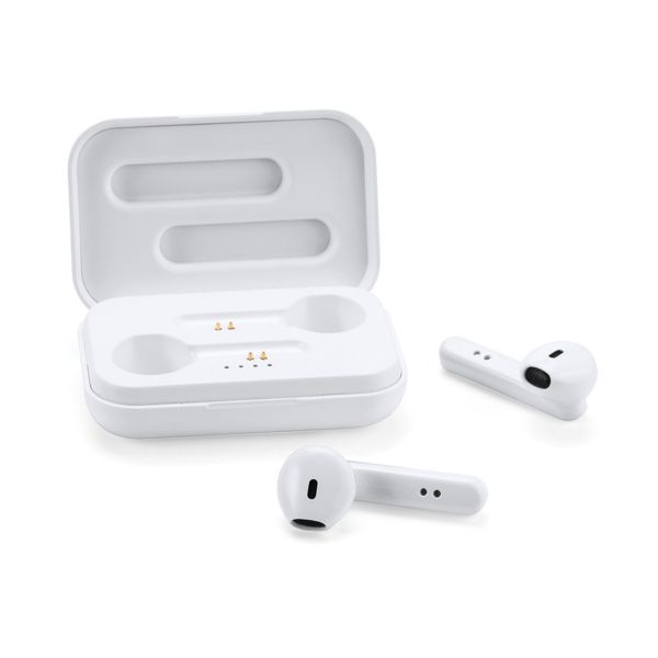 Cuffie wireless Bluetooth 5.0 con custodia di ricarica. Indicatore di carica a LED sulla custodia e pulsante multifunzione integrato in entrambe le cuffie. Potrete ascoltarle ovunque grazie alla funzione vivavoce e trasportarle facilmente nella loro custodia con batteria ricaricabile e coperchio. Durata da 3 a 4 ore Cavo incluso.