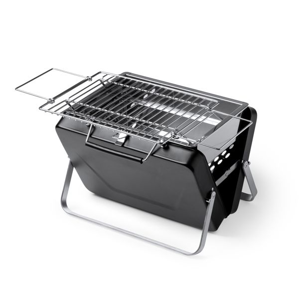 Barbecue a carbone portatile in acciaio inossidabile. Chiudibile con griglia staccabile. Confezione in scatola.