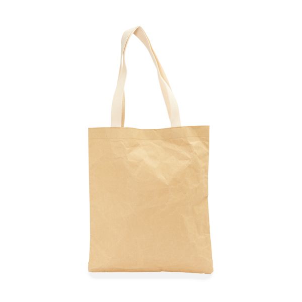 Borsa di carta kraft con due manici in cotone da 64 cm. Resistenza: da 6 a 7 kg. di peso.