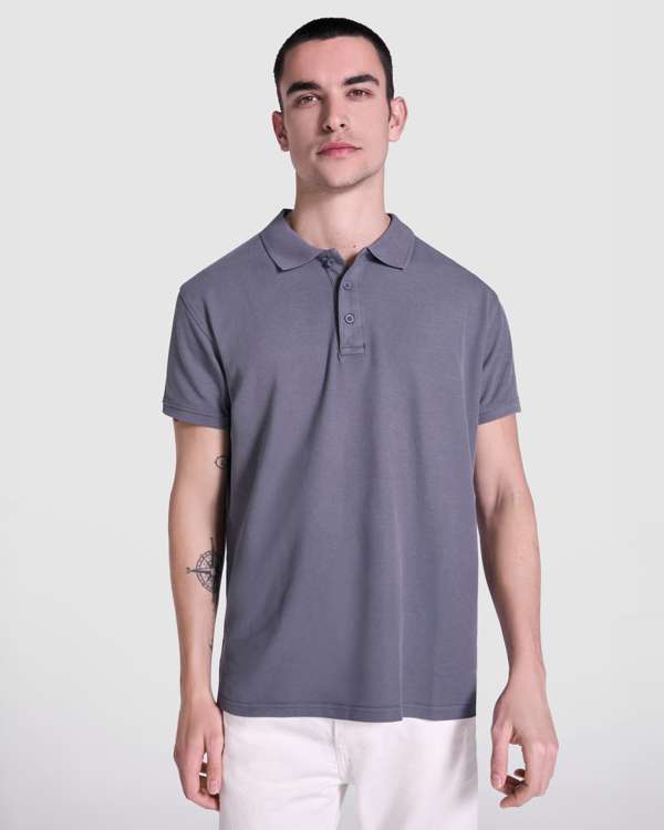 Polo a maniche corte unisex, 100% cotone con finitura acid wash. Collo e maniche in costina 1x1, con aperture laterali. Copriciture tono su tono. Polo con tre bottoni.