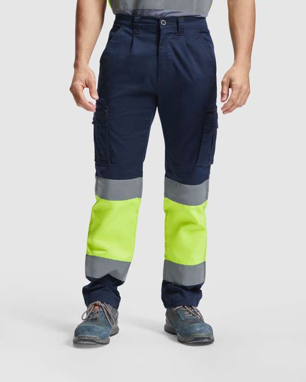 Pantalone lungo multitasche alta visibilità.· Tessuto confortevole e flessibile.· Vita elasticizzata regolabile sul retro.· Due tasche anteriori.· Due tasche posteriori con patta e chiusura in velcro.· Due tasche laterali a soffietto con patella e chiusura in velcro.· Bicolore e nastri riflettenti.
