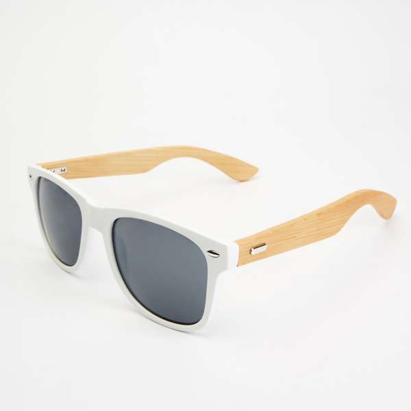Occhiali da sole dal design attraente con montatura lucida e aste in bambù naturale. Lenti con protezione UV400.