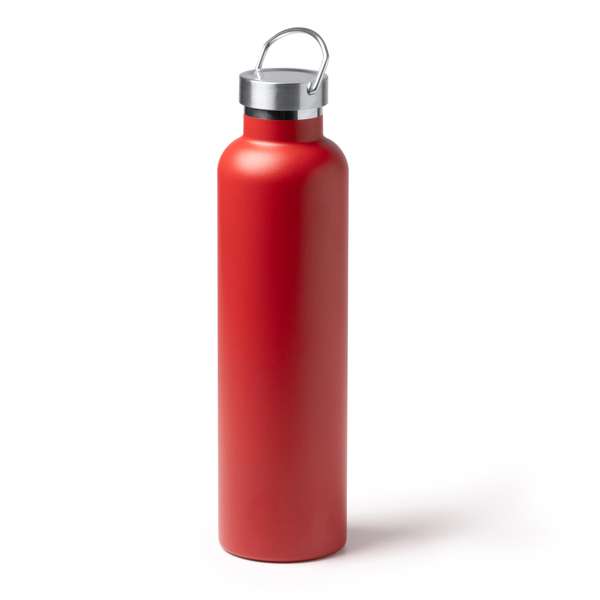 Bottiglia termica in acciaio inox 304 con finitura opaca. Capacità di 1 litro. Maniglia da trasporto. Confezione in scatola di design.