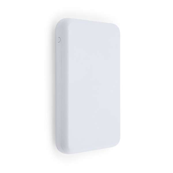 Batteria esterna in ABS per ricarica wireless da 5000 mAh. Funzione di fissaggio tramite ventose. Indicatore di carica LED. Uscita di corrente USB DC5V/2.1A. Wireless DC5V/1A. Include cavo micro USB.