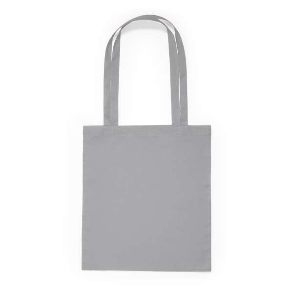 Borsa in cotone colorato, con manico lungo in nastro dello stesso colore.