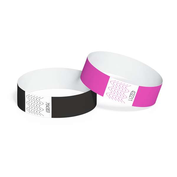 Bracciale per eventi in fibra sintetica con numerazione individuale. Presentato in fogli da 10 unità.