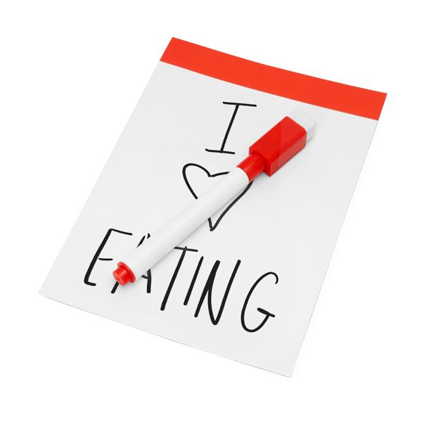 Lavagna magnetica con pennarello in vari colori. Pennarello nero con gomma inclusa.