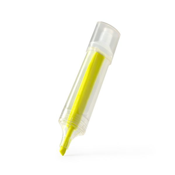 Evidenziatore al fluoro in plastica RPET riciclata con design traslucido.