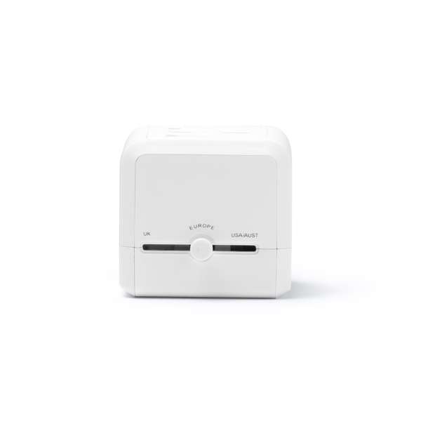 Adattatore da viaggio universale. Due porte di uscita USB e una di tipo C. Valido per l'uso in Europa, Asia, Regno Unito, Stati Uniti e Australia. Confezione in scatola bianca.
