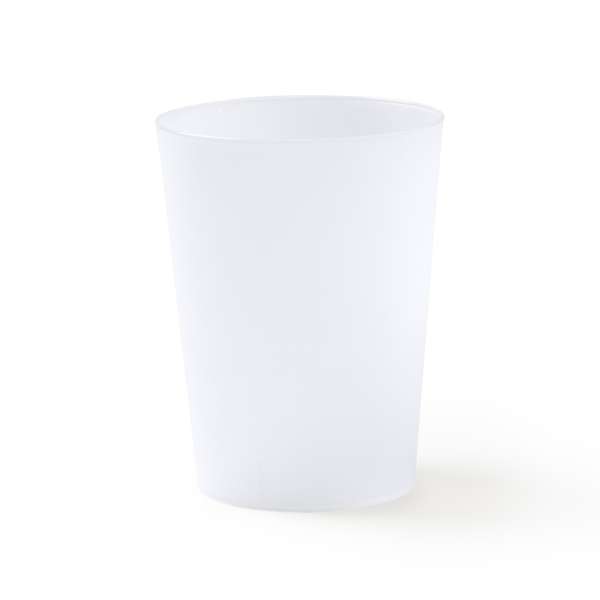 Tazza riutilizzabile in PP duttile resistente. Capacità 500 ml.