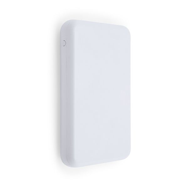 Batteria esterna in ABS per ricarica wireless da 5000 mAh. Funzione di fissaggio tramite ventose. Indicatore di carica LED. Uscita di corrente USB DC5V/2.1A. Wireless DC5V/1A. Include cavo micro USB.