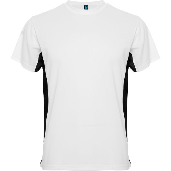 T-shirt tecnica maniche corte per donna.1. Collo a V.2. Laterali e spalle con due tessuti di poliestere.3. Tessuto principale occhio di penice e tessuto reticolare 3D sulle spalle e sui laterali.4. Tessuto trattato per l'assorbimento della umidità.