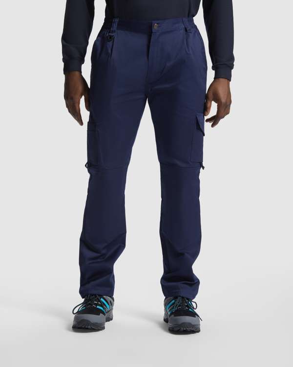 Pantaloni da lavoro lunghi a taglio dritto senza pinzetta.· Girovita elastico per una migliore vestibilità. · Due tasche posteriori e una tasca laterale con cerniera sul lato destro. · Due tasche laterali, a sinistra con pattina e soffietto più una tasca interna e una tasca destra con diversi scomparti. · Cintura con portachiavi. · Tasche interne per la protezione delle ginocchia. · Passanti nelle tasche posteriori e laterali.