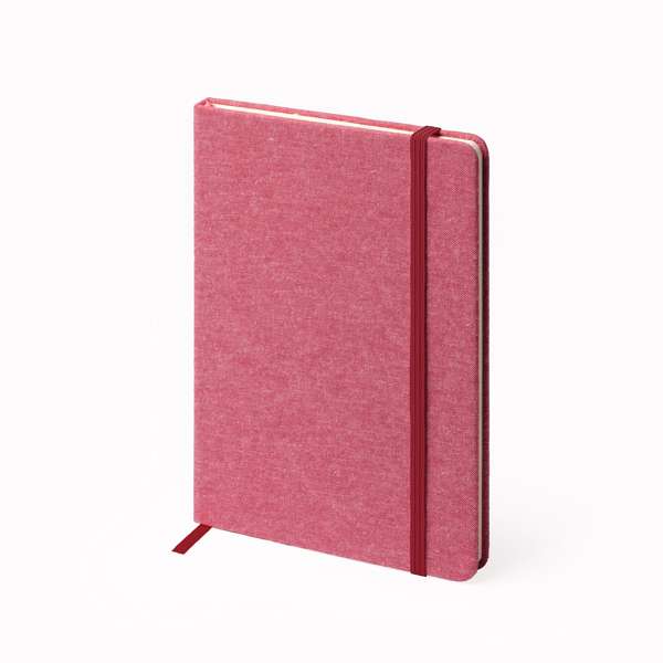 Quaderno A5 con copertina in cotone. Segnapagina ed elastico. 100 fogli bianchi.