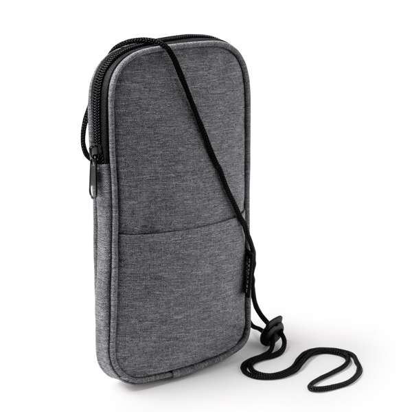 Custodia per cellulare in poliestere RPET. Scomparto principale con chiusura a cerniera abbinata. Tasca esterna. La tracolla coordinata è inclusa.