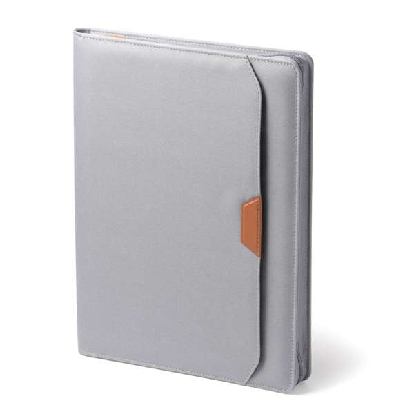 Cartellina multiuso A4 in RPET 600D e PU con chiusura a zip. Tasca esterna, diversi scomparti interni e 4 spazi per le tessere. Include un portapenne. Quaderno a righi con 20 fogli rimovibili.