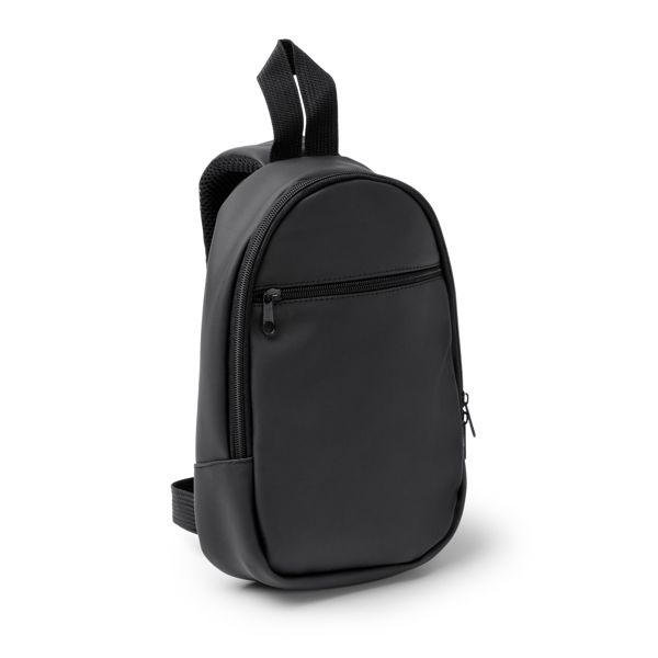 Borsa sportiva realizzata in RPET 300D con chiusura a zip e tasca frontale con fascia riflettente. Cinturino regolabile e manici rinforzati.