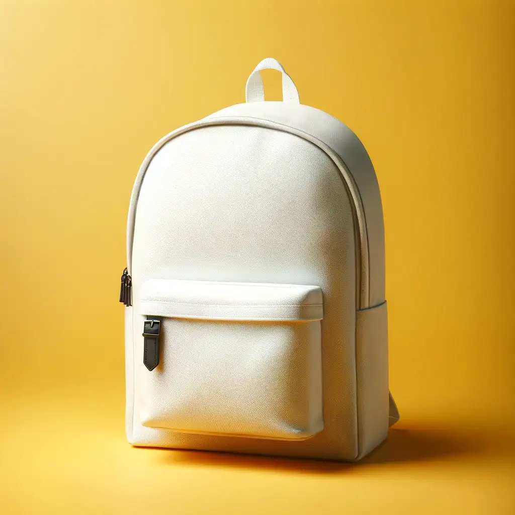 Zaino basico in tessuto resistente.1. Doppia cinghia per le spalle e maniglia in contrasto.2. Due tasche laterali, uno frontale, con cerniera e tiretto in tono.