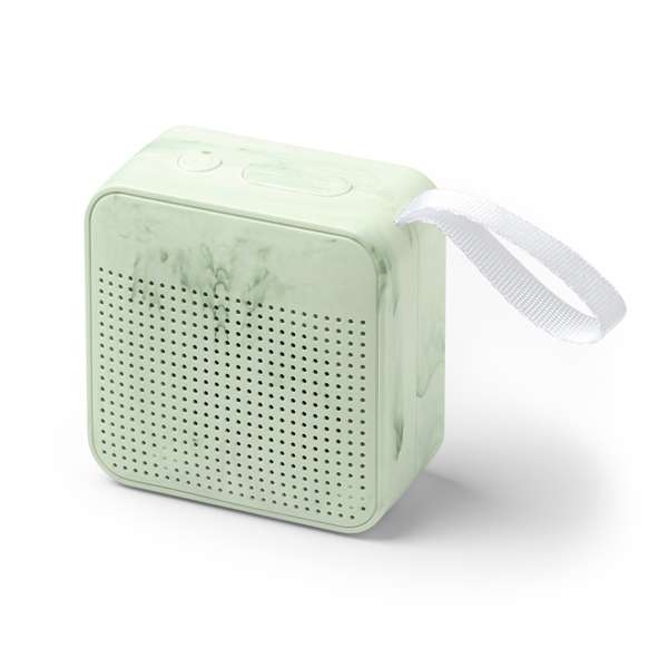 Cassa acustica wireless realizzata con tappi di bottiglia riciclati. Uscita da 3W. Cavo di tipo C incluso. Pratica maniglia da trasporto in poliestere RPET. Confezione in scatola di design ecologico.